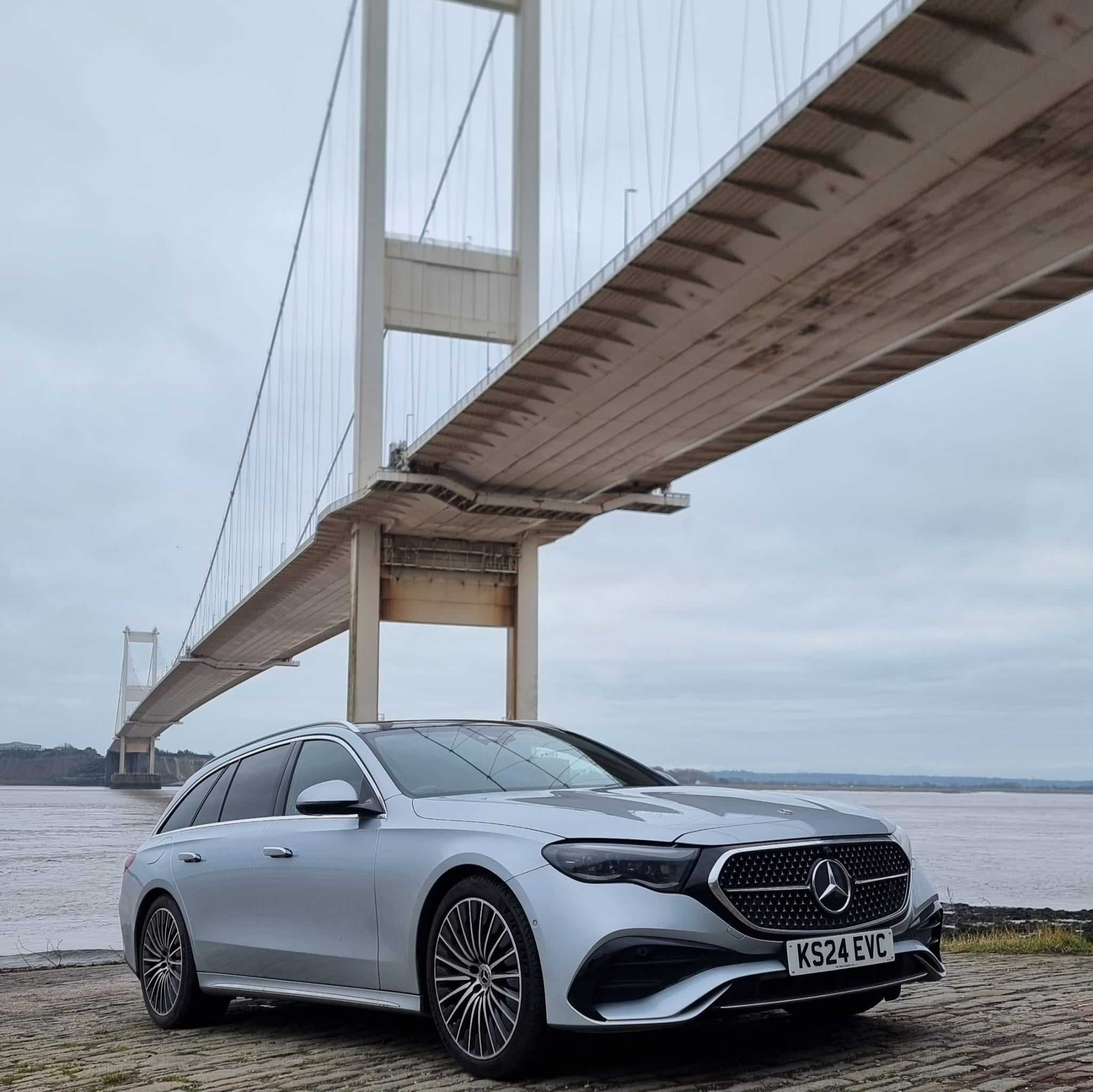 Is a well maintained prestige luxury Mercedes Benz E class estate capable of carrying up to 4 passengers and 2 large, 2 medium and 2 small suitcases at any one time, with complimentary bottled water, charging cable and Wi-Fi.